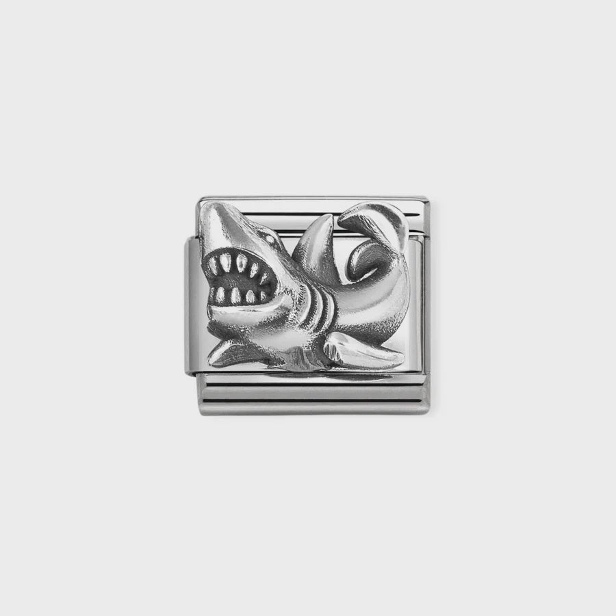 Nomination Composable Classic Oxidized Link Shark in Stainless Steel and Sterling Silver
