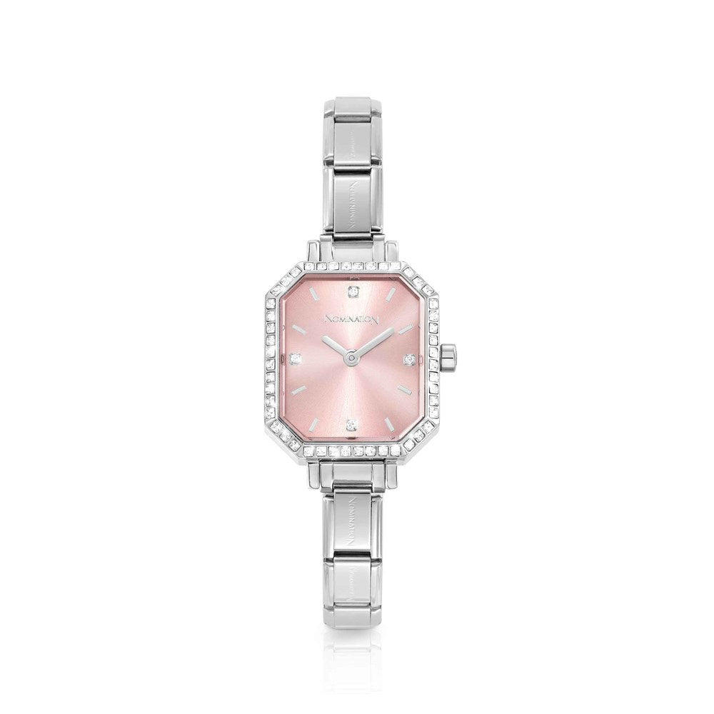 PARIS watch with steel strap and RECTANGULAR cz (014_Pink)