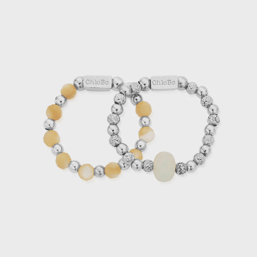 Embody the tranquil energies of Bali with the Peace & Balance Set of 2 Rings. Fusing natures soothing elements with amazonite, encouraging balance and harmony, and mother of pearl, providing protection and healing, this powerful blend reflects the island’s calming spirit, grounding its wearer in peace and positivity.
