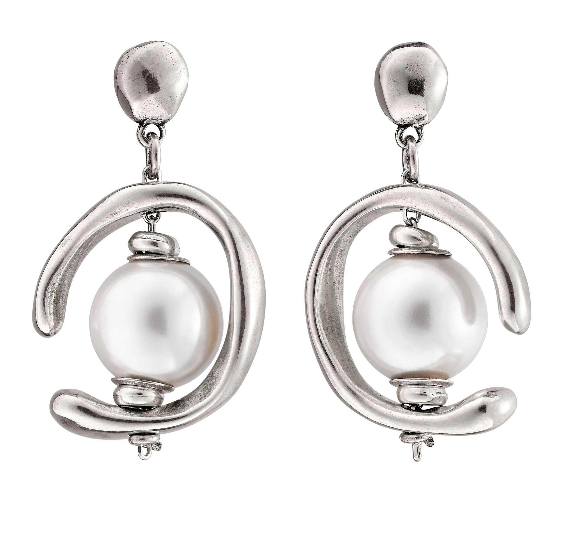 Sterling silver-plated hoop earrings with a white pearl in the center. Handmade in Spain.