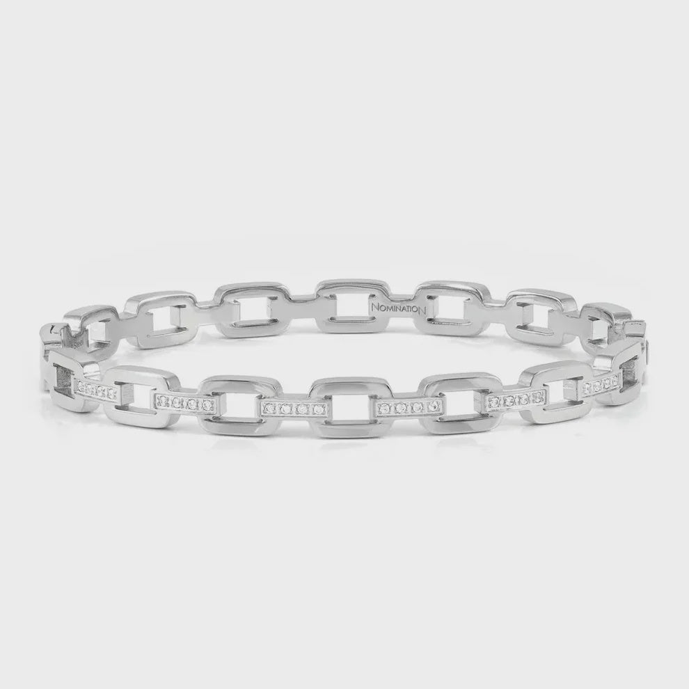 Light up your look with iconic style. This bold rigid chain profile in stainless steel contrasts with delicately set white Cubic Zirconia. The invisible side clasp makes this so easy to put on that you will want to wear this every single day.