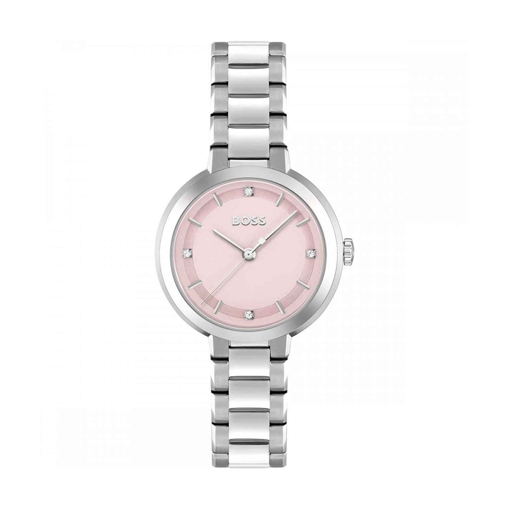 The sophistication and elegance of the Hugo Boss Sena 34mm Ladies Watch cannot be overstated. From the renowned BOSS collection, this exquisite timepiece exudes a subtle glam which is judiciously designed to complement every modish woman's style. Boasting a quartz movement - one of the most reliable and accurate watch movements available - it ensures you are not only in style but also consistently punctual. The watch is an extension of your poise and confidence, with a sleek 34mm case width, making a strong yet understated statement of class and status on your wrist.