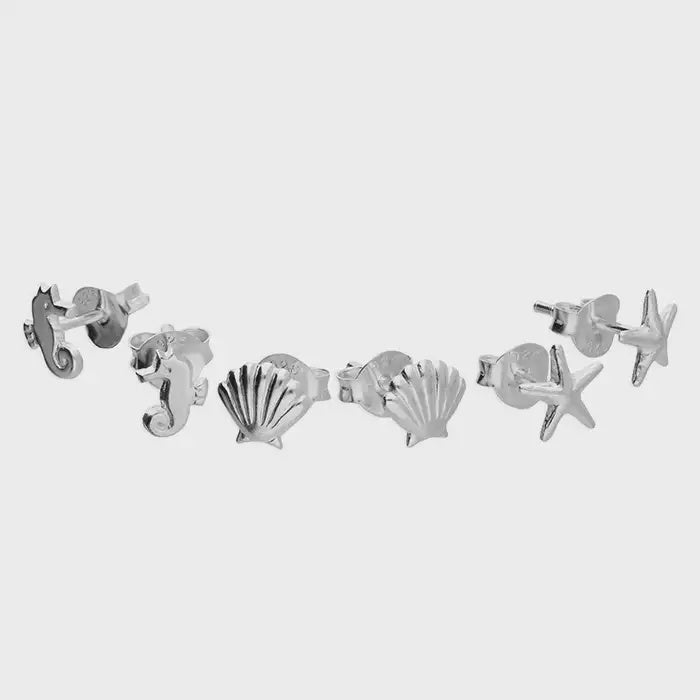 Set of three 'Under the sea' studs; starfish,seahorse and shell
