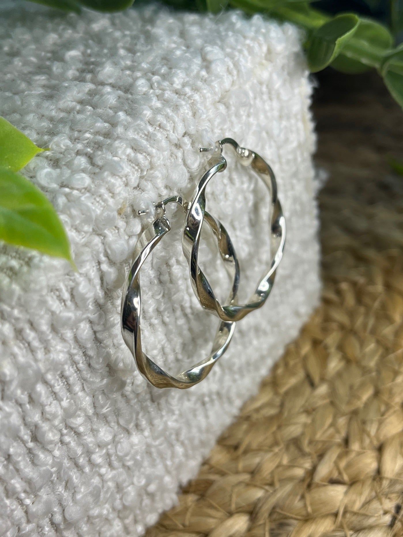 SILVER 25MM TWISTED HOOPS