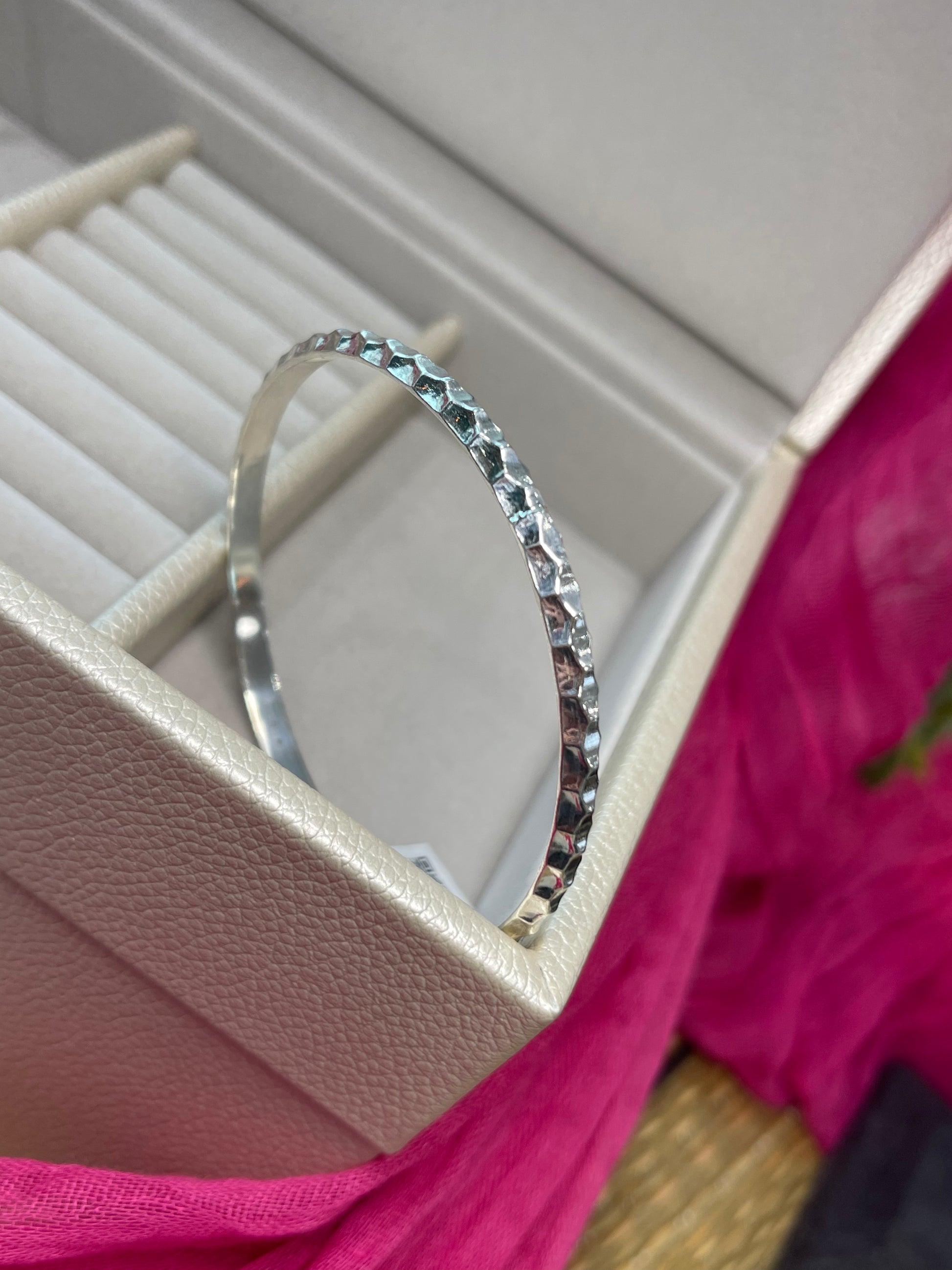 Silver 5mm D Shaped Bangle With Raised Honeycomb Pattern