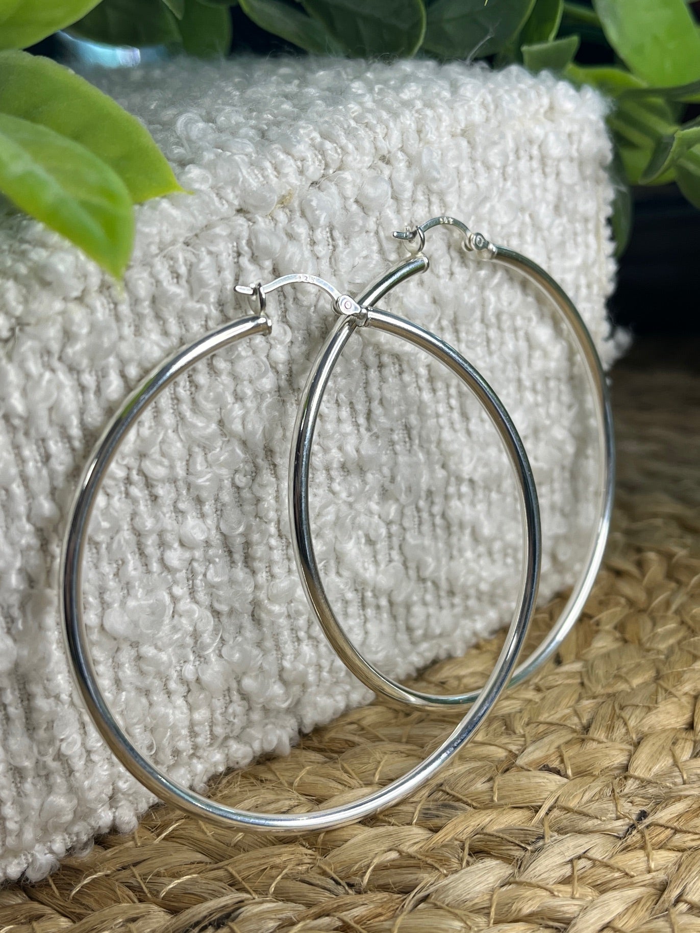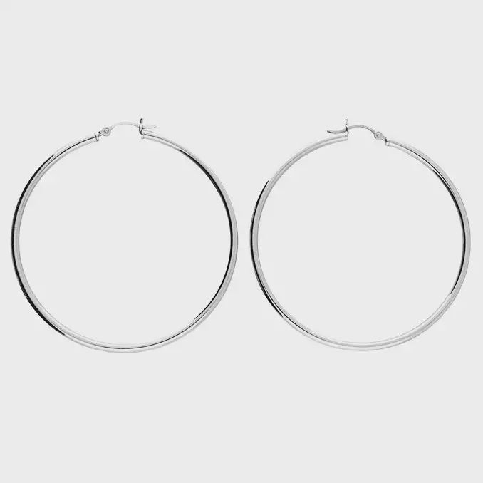 Silver 60mm hoops with creole fitting.