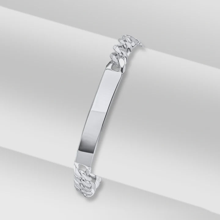 Silver 7.5mm Flat Curb ID Identification Bracelet