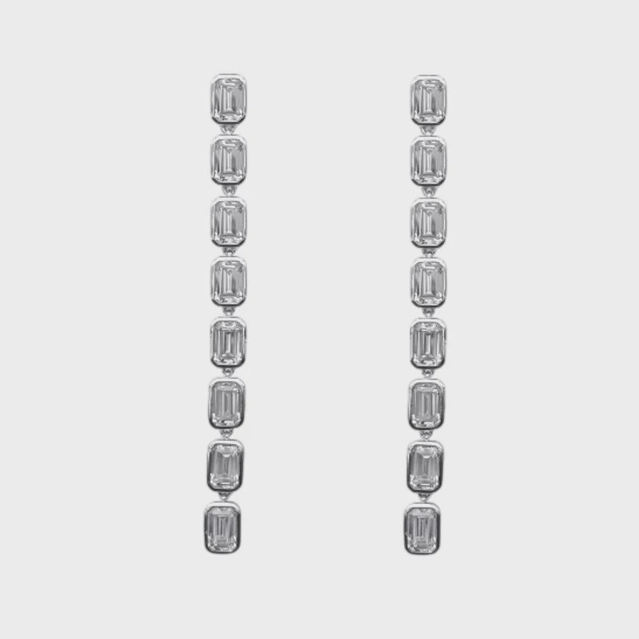 Silver Drop Earrings with Emerald Cut CZ Stones