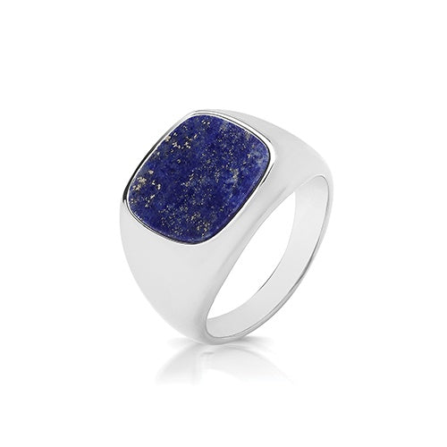 SILVER TRIPLE PLATED CUSHION LAPIS SIGNET RING