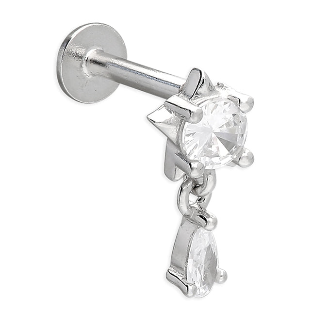 Single earring cubic zirconia star stud with cubic zirconia drop charm labret