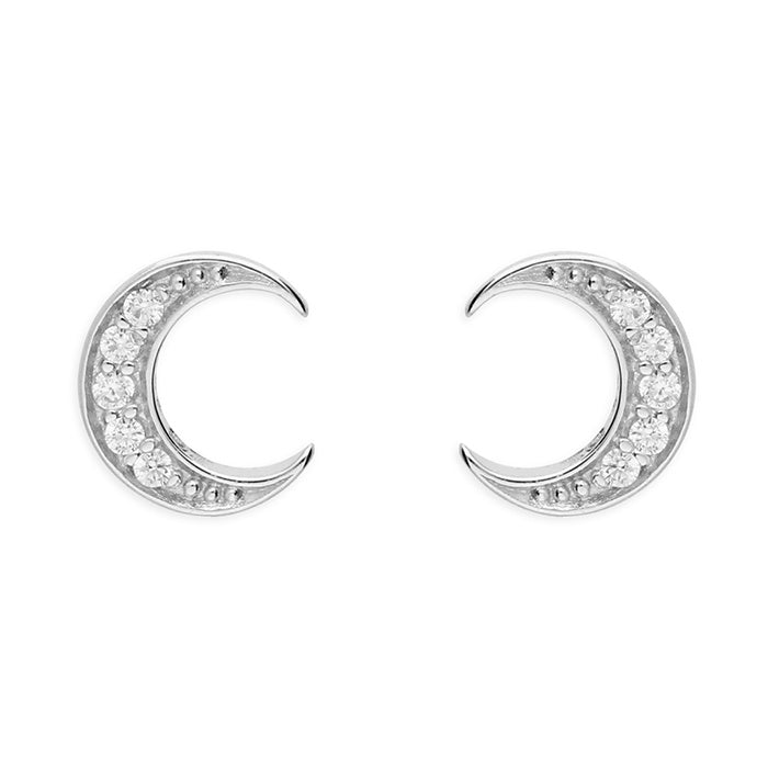 Small Cubic Ziconia Moon Stud Earrings
