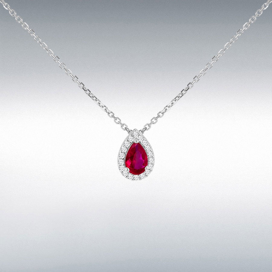 Sterling Silver 11.2mm x 8.7mm Red Teardrop And 1.2mm CZ Halo Necklace 43cm/17" - 46cm/18"
