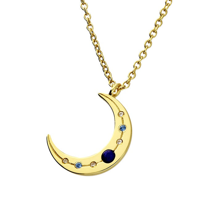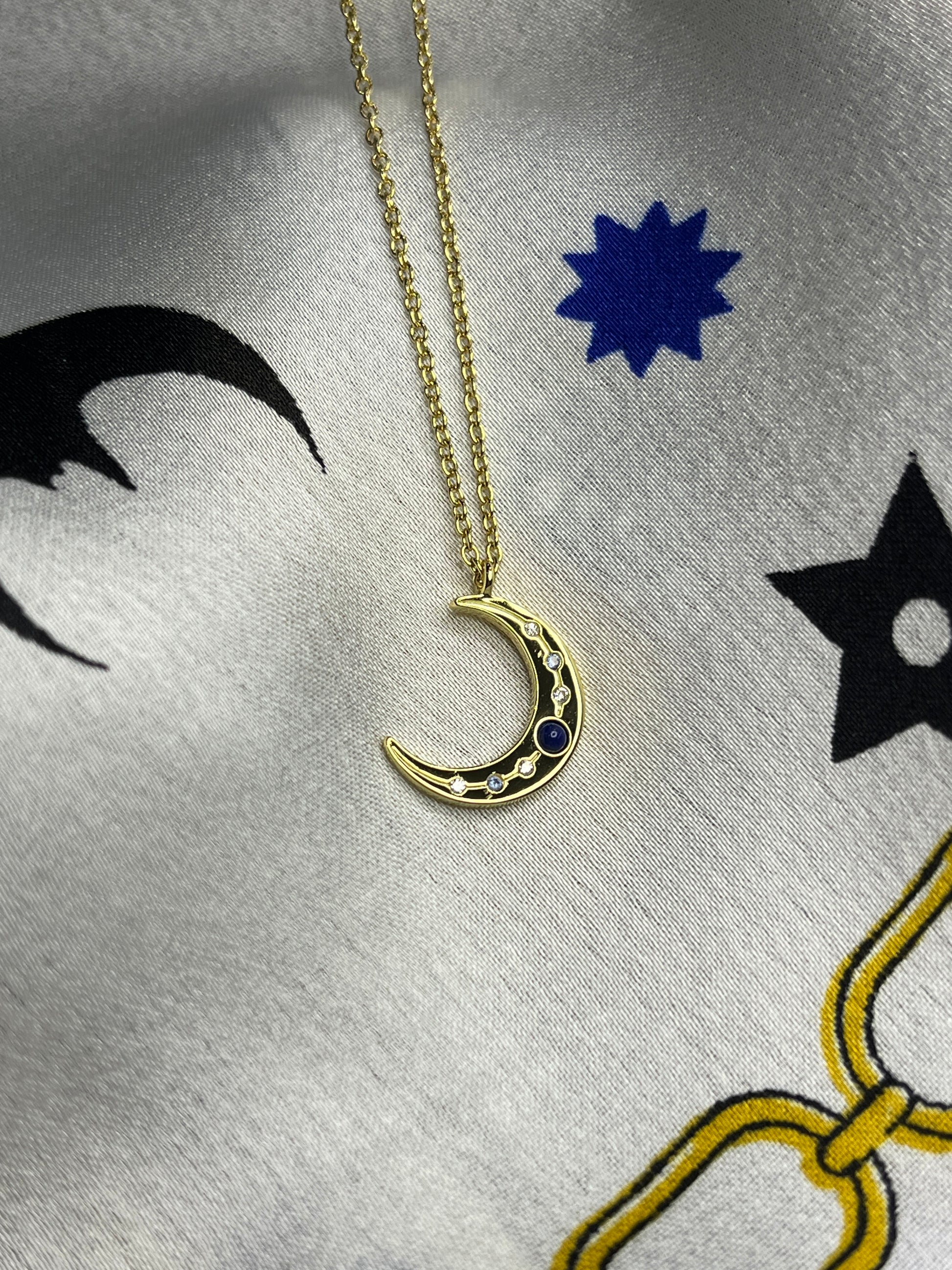Sterling Silver 18ct gold plated moon necklace with lapis lazuli