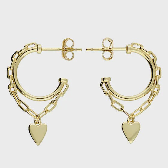 Sterling silver 18k Gold plated heart chain hoops