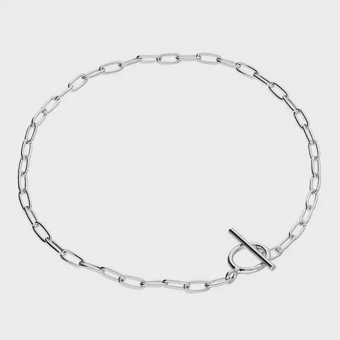 Sterling Silver Bracelet 19.5cm oval open wire paper chain T-bar
