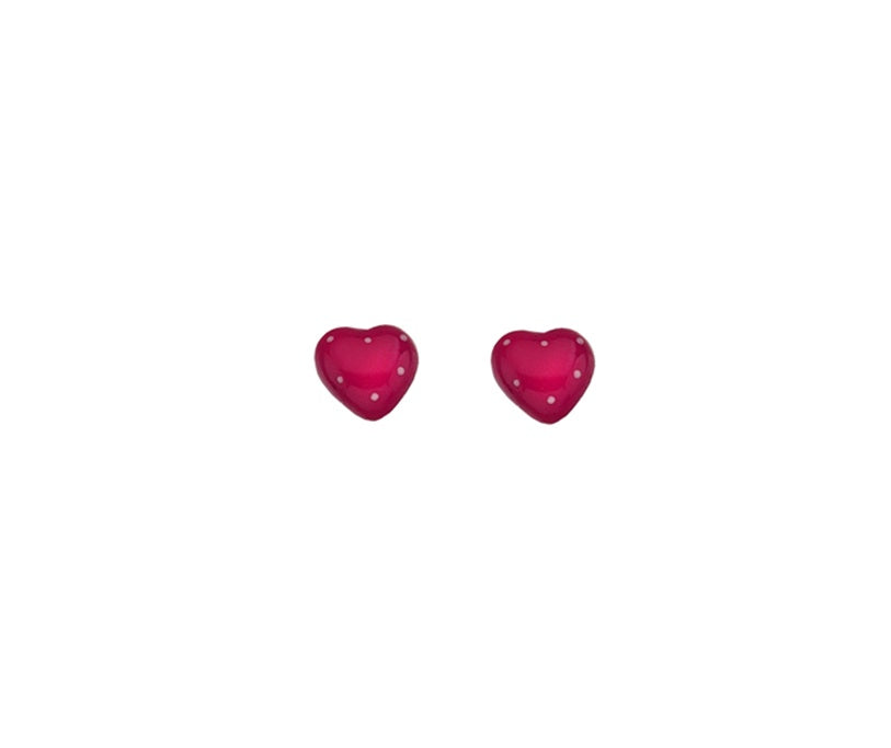Sterling Silver Dark Pink Enamel Polka Dot Heart Stud Earrings