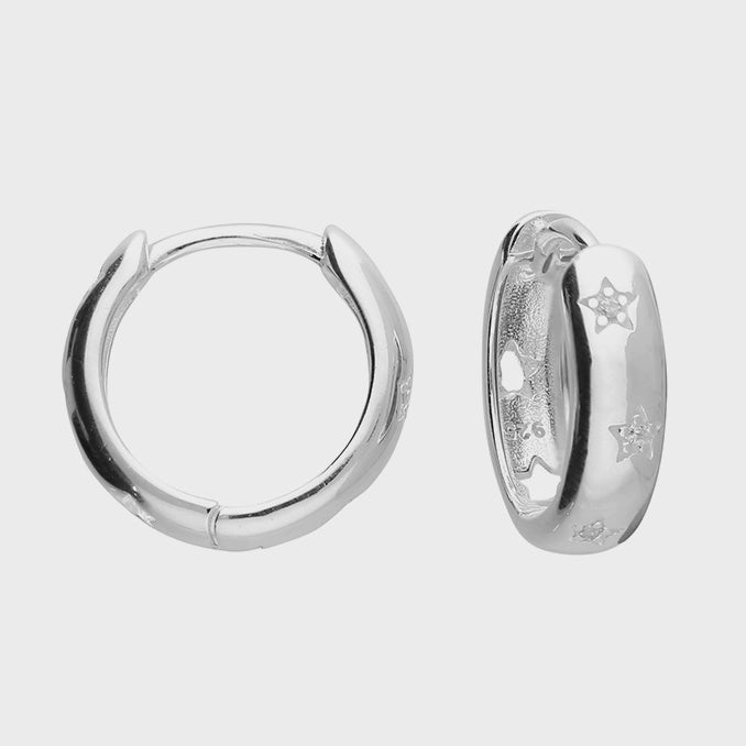 Sterling Silver Huggie Earring with Cubic Zirconia Stars