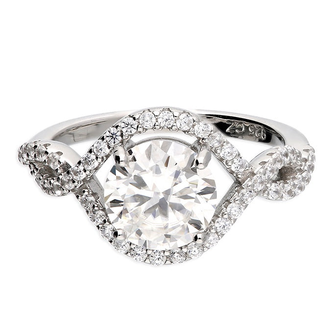 Sterling Silver Moissanite Twisted Halo Ring