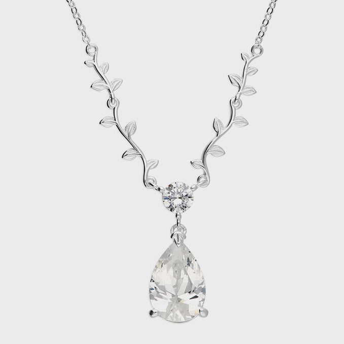 Sterling Silver Necklace - 41-46cm Extender. Cubic zirconia teardrop leaf