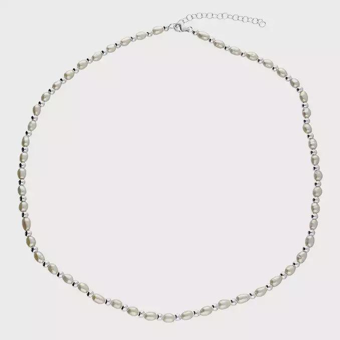 Sterling Silver Necklace Alternate bead and oval freshwater pearls