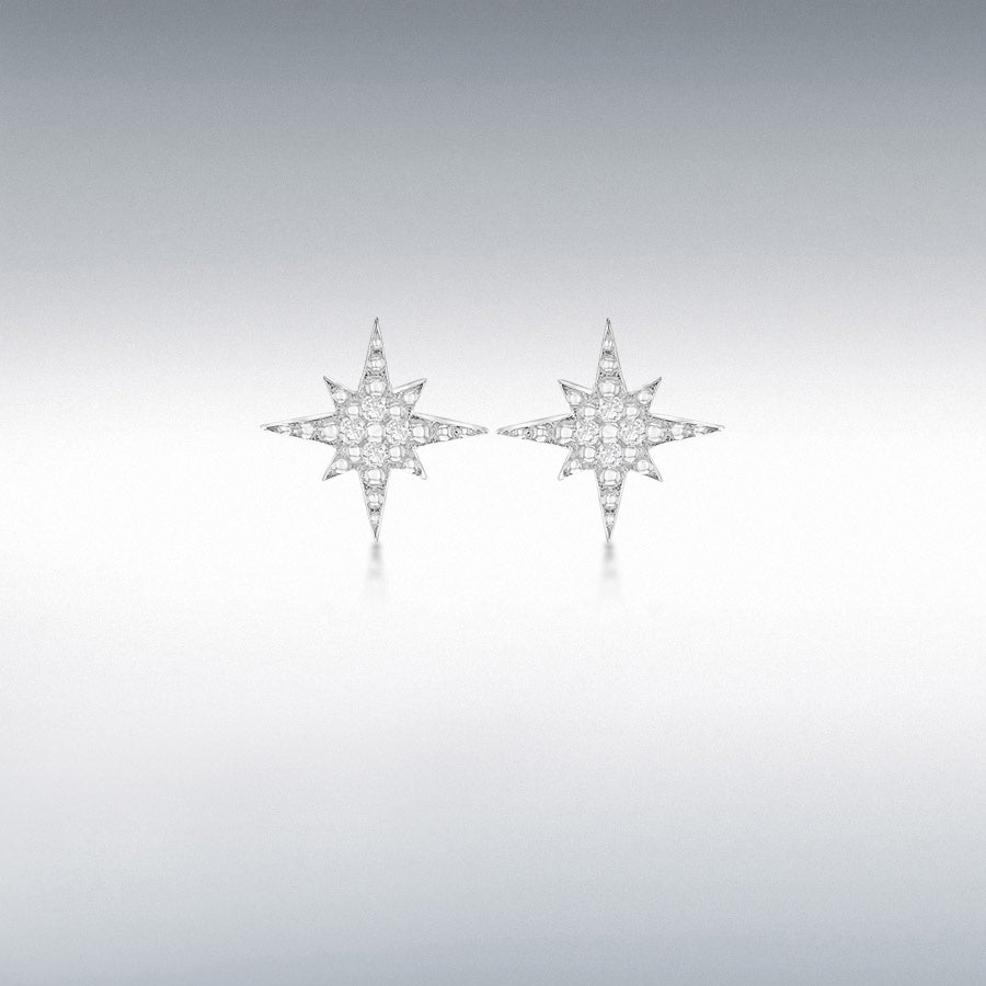 STERLING SILVER RHODIUM PLATED CZ 8.3MM X 11.8MM COMPASS-STAR STUD EARRINGS