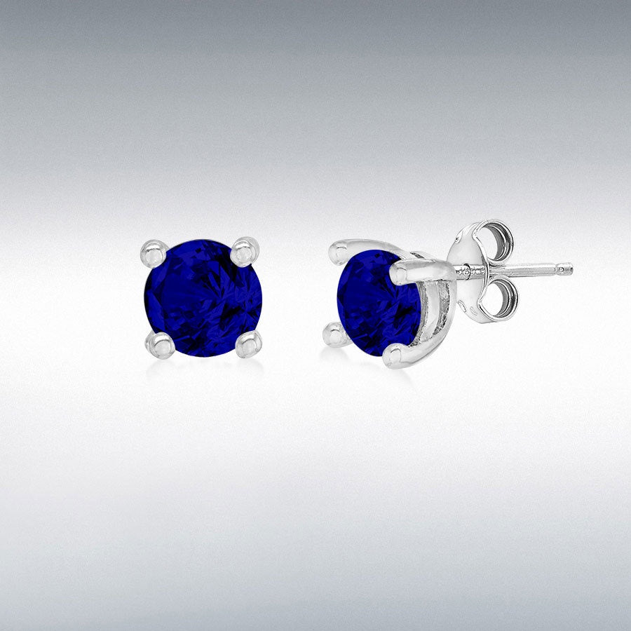 Sterling Silver Rhodium Plated Sapphire 4mm Glass Stone September Birthstone Stud Earring