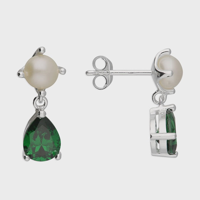 Stud earrings Freshwater Pearls & green cubic zirconia