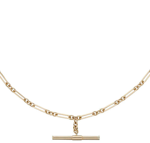 A classic style has been brought into the modern era with this stunning t-bar chain necklace. Featuring a figaro style chain and crafted in 9ct yellow gold, this timeless piece is sure to compliment any style and is made to last a lifetime. Make sure to pair with the matching bracelet to complete the look!
