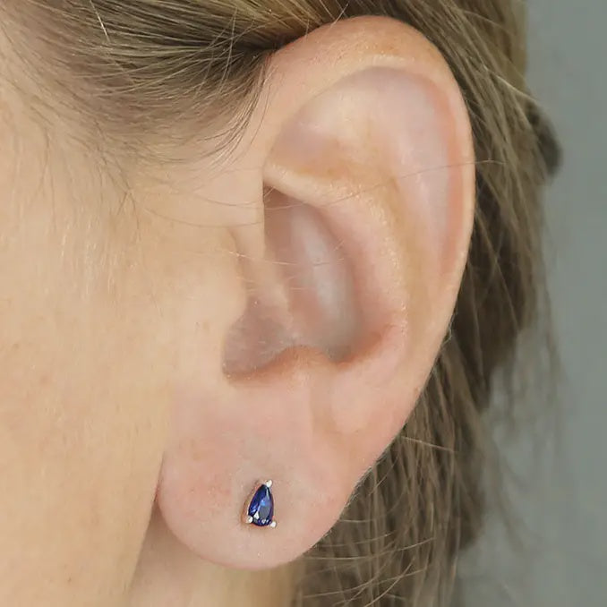 Tiny pearshape blue stud earrimngs