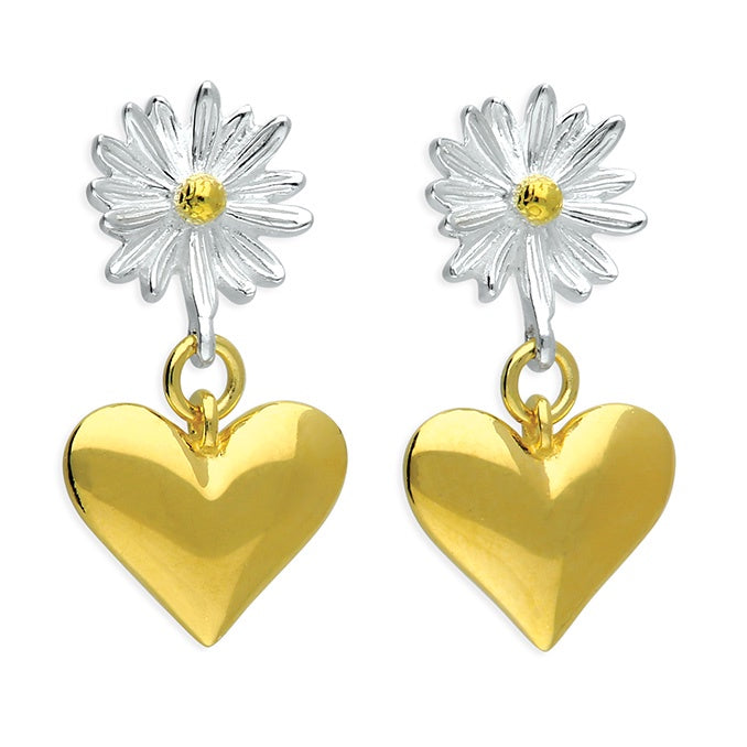 Two-tone yellow gold-plated daisy stud, with Yellow heart drop
