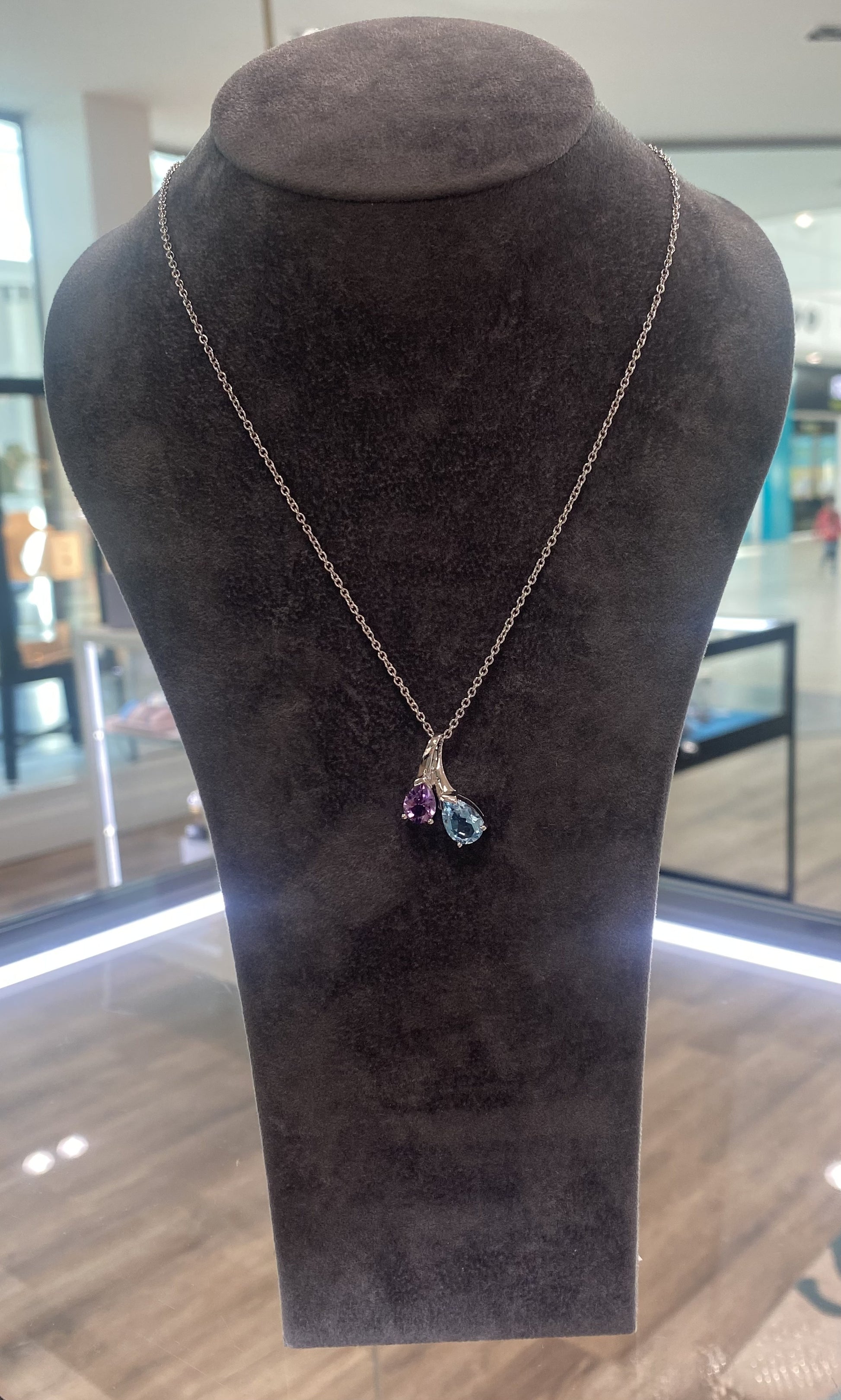 Unique Amethyst and blue topaz pendant