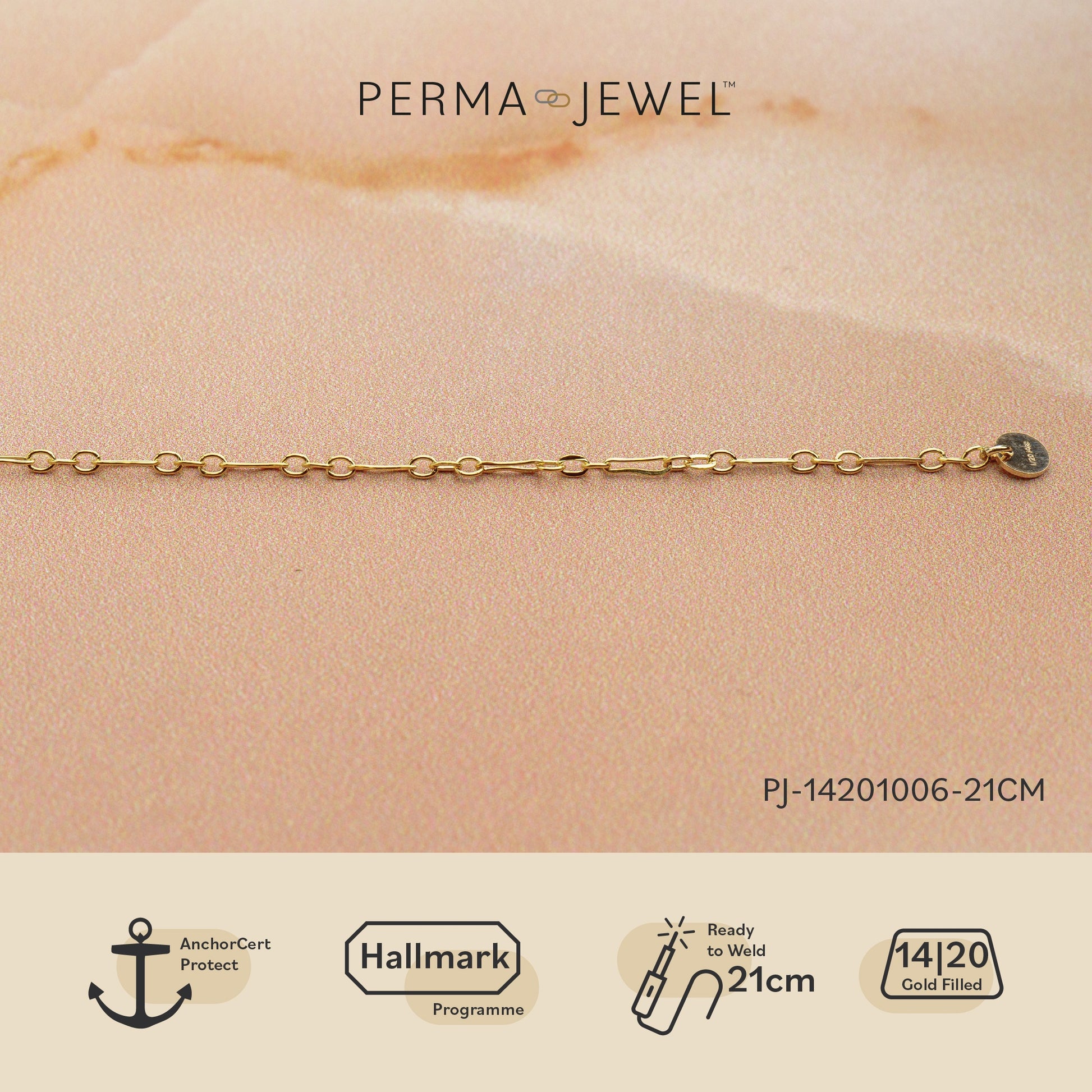 Yellow Gold-Filled 1.7mm Flat Long and Short Chain 21 cm Welding bracelet