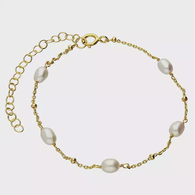Yellow gold plated 17-21cm freshwater pearl and beaded bracelet